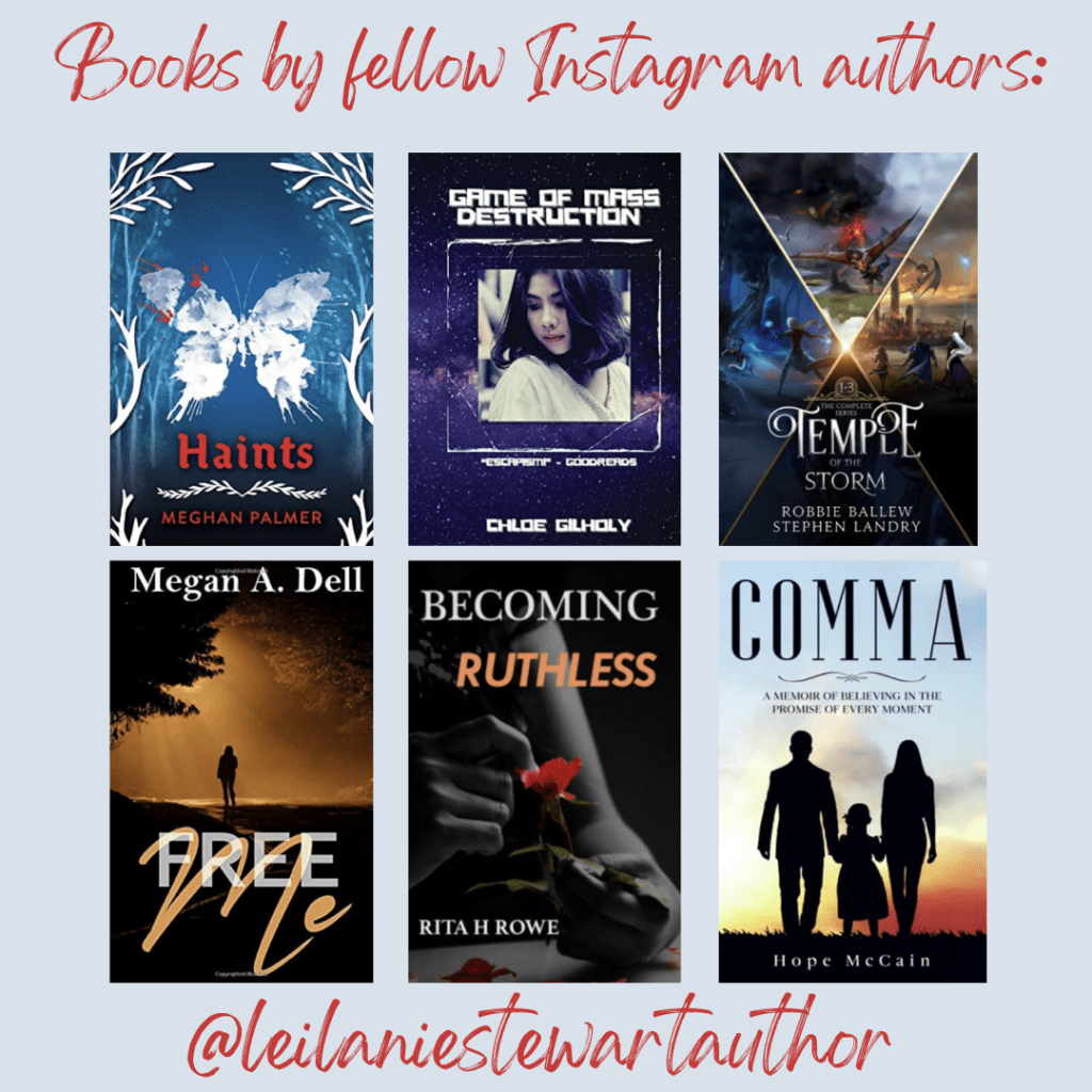 This is my first post for Writer Promo Friday, just to give back to recent followers I have met through Instagram, in the spirit of authors supporting authors. All of these writers have supported my writing through either following me on Instagram (@leilaniestewartauthor), engaging with my posts, or writing reviews of my books and I want to promote and share their books with you too. So, here are the links to buy their books: