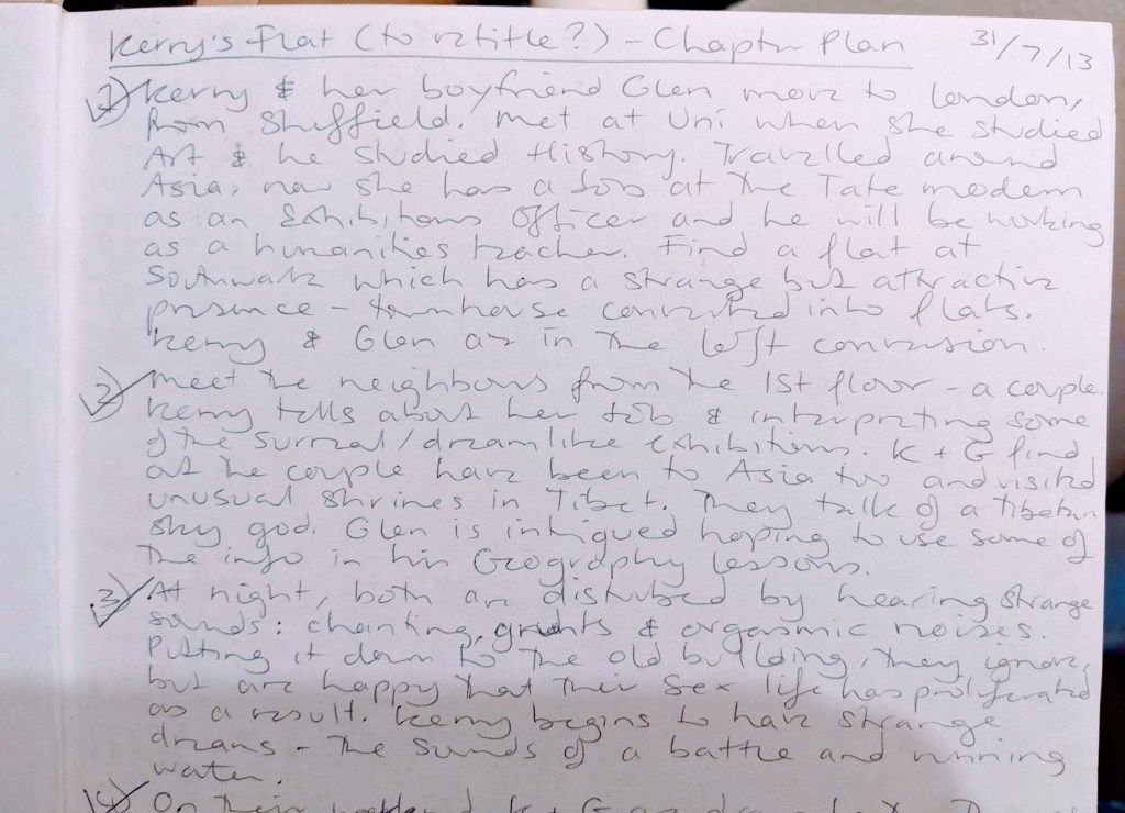 Chapter plan for Kerry’s Flat, which became my debut novel from Blossom Spring Publishing, Gods of Avalon Road