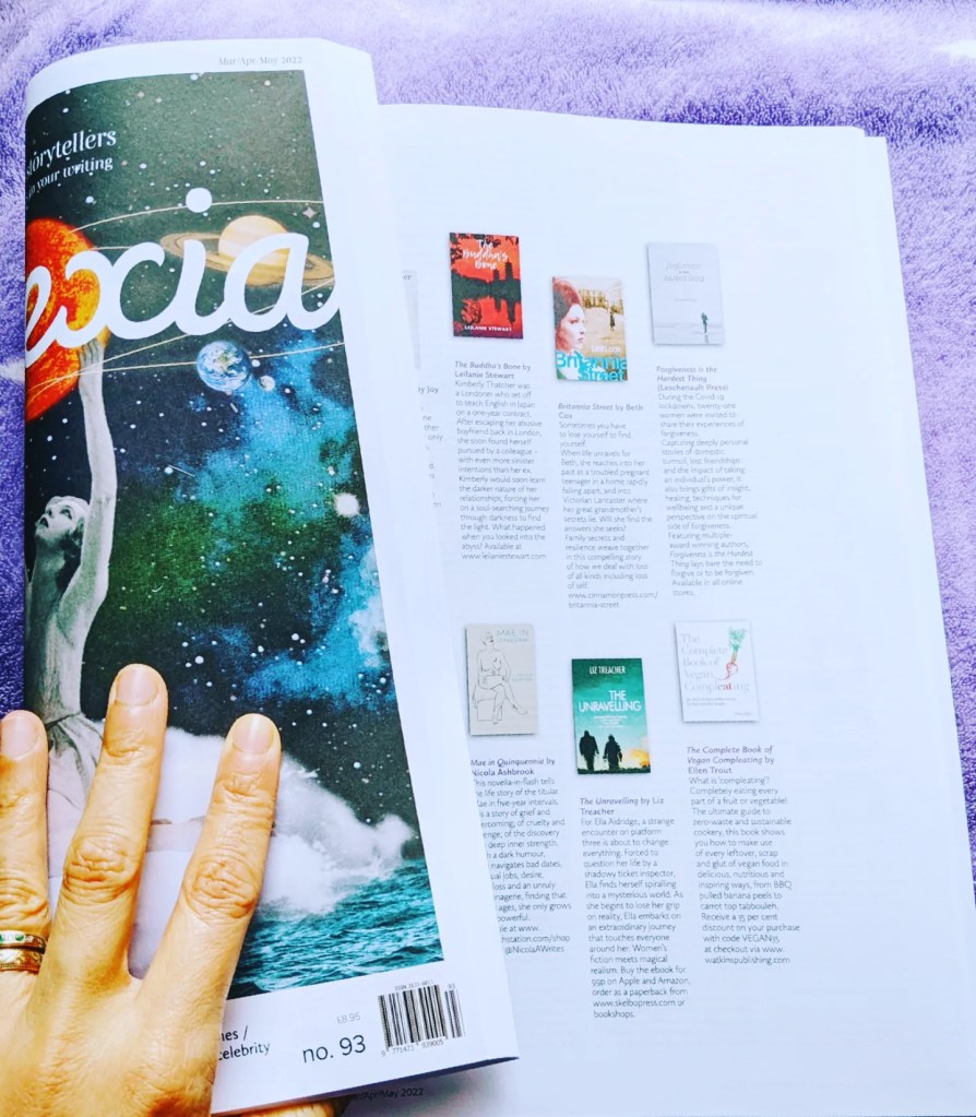 My copy of Mslexia came in the post this morning. I have an advertisement for The Buddha’s Bone in this issue (no. 93), which is the issue for March, April and May 2022. You can see my ad on the second and third photos.