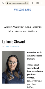 My latest author interview is up on Awesome Gang. You can read my answers to eleven questions about my writing, reading choices and general literary life.