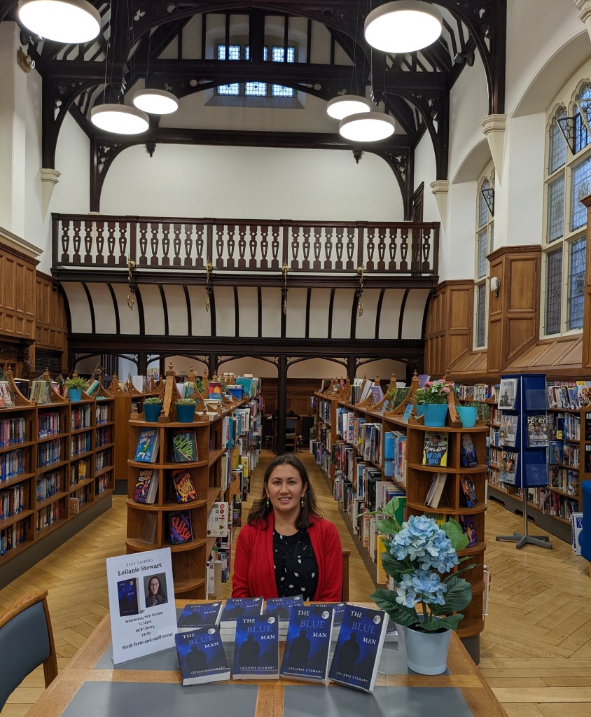 It has been a busy week for me. I have also had another promotional library event with a book signing for The Blue Man in the run up to Halloween. It turned out to be quite atmospheric too with the rain drumming on the stained glass windows of the beautiful, historic library – perfect for a horror novel.