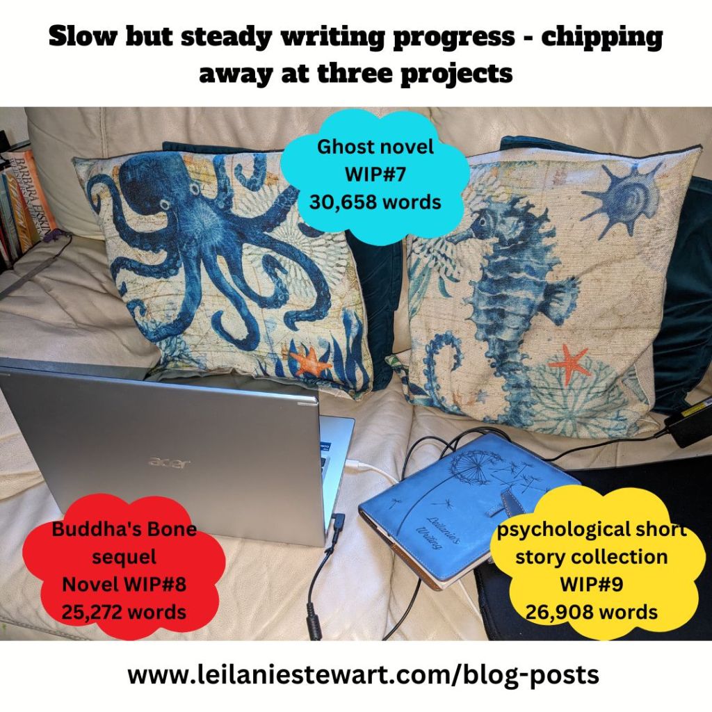 As a result, I can tell that my literary output is nowhere near as prolific as the previous two years. Normally I would have a first draft finished in 6 or 7 months. So far, my progress on my three current projects is as follows: