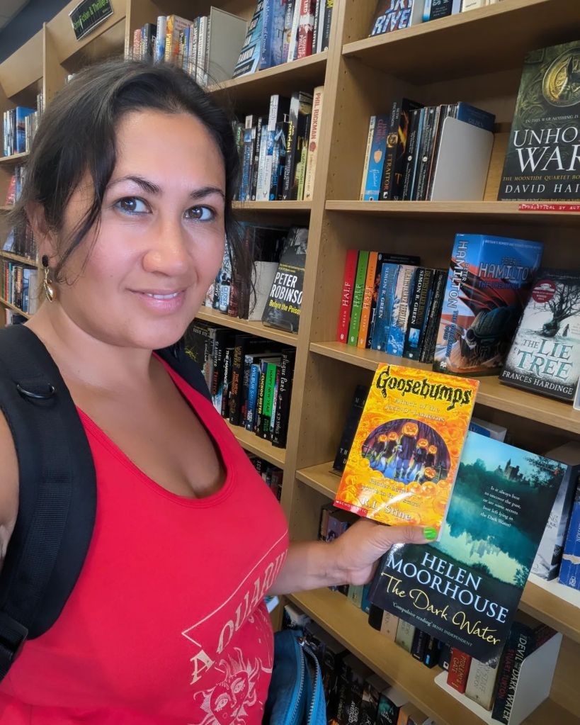 I really shouldn’t buy more books when my TBR pile is as long as my arm (no exaggeration there either, I actually had to buy extendable book ends this summer for the coffee table), but I saw this book by Helen Moorhouse and couldn’t resist. The Dark Water is a ghost novel that I’ve only read a few chapters of, but so far so good. Goosebumps is a Halloween treat for the little dude.