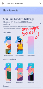 This month, my Kindle app notified me that I just passed a silver reading achievement. I’ll be honest, I didn’t know there was any such Kindle challenge, but it was fun to find out that I’m close to gold, nonetheless. Although I prefer reading paperbacks, eBooks are undoubtedly more convenient. For me, I tend to mostly read my Kindle books in bed, or out and about whenever I have a moment to spare. So far this year, I have read 44 Kindle books, but I’ll do a proper update towards the end of 2024.