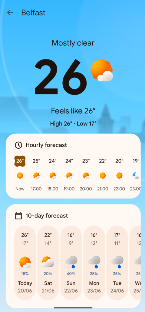 Summer is officially here, my favourite season. It’s currently the hottest day of the year so far here in Northern Ireland at 26°. As a sunworshipper, I’m loving the heat as well. Here’s a screenshot, mostly so that when it inevitably turns back to typical rainy Northern Irish weather, I can look back on this blog post and know that it wasn’t just a dream, ha ha.