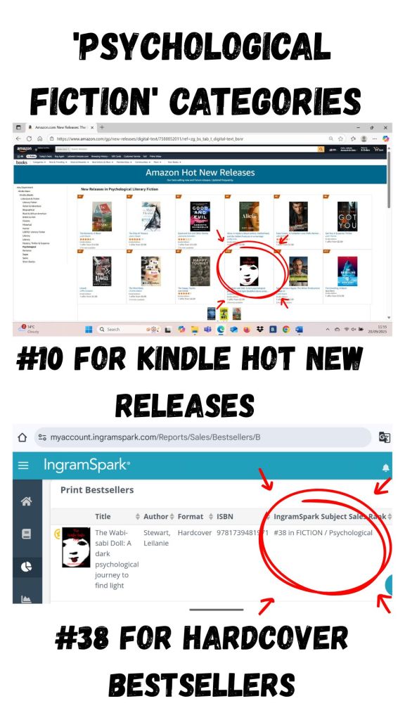 Additionally, it’s sitting at #38 for hardcover sales in psychological fiction through Ingramspark. Woohoo!