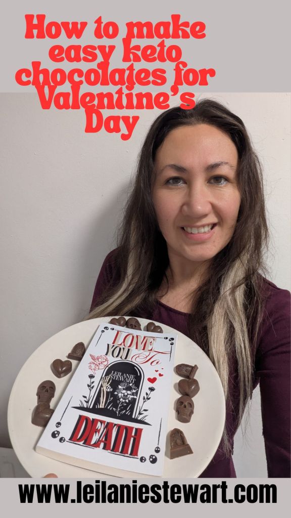 Happy Valentine’s Day horror lovers…or should I say, Valloween? Today I’m going to share with you my special recipe for how to make super easy keto chocolates that you will love so much, you might just devour all of them in one go. Here, I’ve made mine shaped as hearts, skulls and gravestones to match my collection of ghost stories for Valentine’s Day, Love you to Death, but you can use whatever shape of silicon moulds that your sweet, spooky wee heart desires. Ready to get chocolatey? Here goes:
