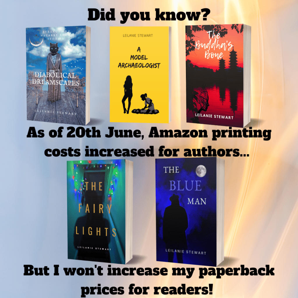 If you’re an Indie author, you may know that as of 20th June, printing costs increased, meaning that publishers/ self-publishers alike will be paid less in royalties – unless of course, they increase the retail price of their books.