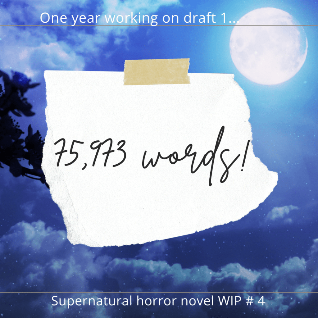 It is one year since I started writing draft 1 of my supernatural horror (novel WIP # 4). Last November was when I decided to expand the short story version of this work in progress into a novel length project. Amidst all the intensity of the last two and a half weeks since publication of The Buddha’s Bone, I had completely forgotten that fact – until now. I am up to 75k words, hurray!
